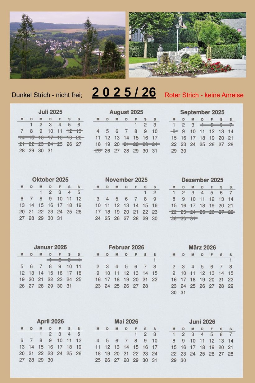 Hier können Sie auf einem einfachen Kalender sehen, ob Ihre Urlaubszeit zum Buchen frei ist.